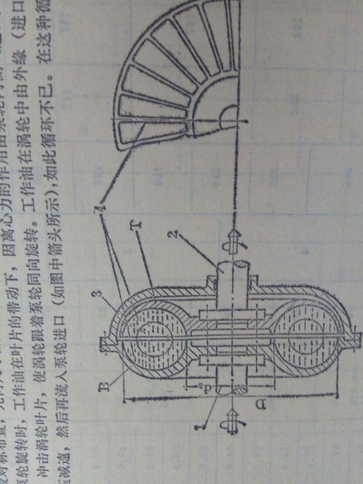 液力聯(lián)軸器傳動(dòng)原理由主動(dòng)軸1,泵輪B渦輪T,從動(dòng)軸2,和防止漏油的轉(zhuǎn)動(dòng)外殼3等主要部件組件。泵輪和渦輪一般對(duì)稱布置,幾何尺寸相同,在輪內(nèi)組裝許多徑向輻射葉輪片4.工作時(shí),在耦合器中充以工作油。當(dāng)主動(dòng)軸帶動(dòng)泵輪旋轉(zhuǎn)時(shí),工作油在葉片的帶動(dòng)下,因離心力的作用由泵輪內(nèi)側(cè)流向外緣,形成高壓高速液流,沖擊渦輪葉片,使渦輪跟著泵輪同向旋轉(zhuǎn)。工作油在渦輪中由外緣流向內(nèi)側(cè) 流動(dòng)過程中減壓減速,然后在流入泵輪進(jìn)口如此循環(huán)不已,在這種循環(huán)流動(dòng)過程中,泵輪把輸入機(jī)械功轉(zhuǎn)換為工作油的功能和升高。