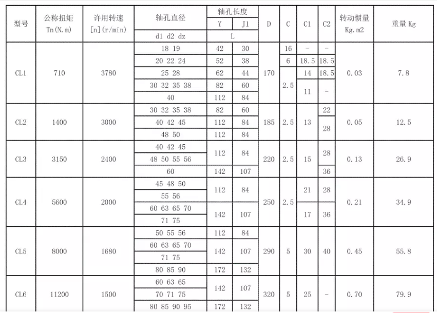 聯(lián)軸器尺寸型號參照表