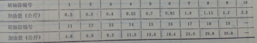 聯(lián)軸器的咬合應在油浴內工作。潤滑油一般可用機械油。露天工作的聯(lián)軸器,在天氣寒冷時,使用10號汽油機潤滑油。聯(lián)軸器的油容量見圖片