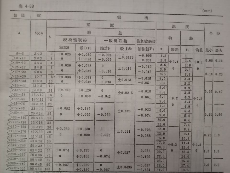 4.表中較松聯(lián)軸器鍵連接的偏差值適用于導(dǎo)向聯(lián)軸器平鍵的連接。